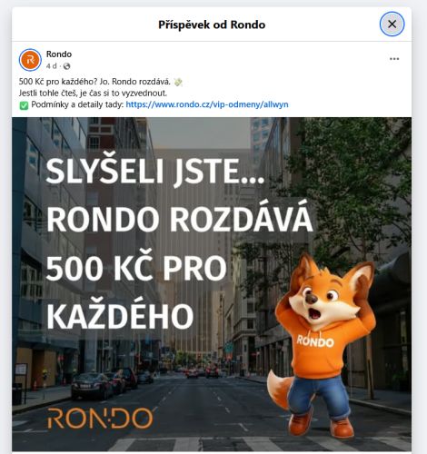 Podmínky a detaily tady: rondo.cz/... vyskočí registrační formulář, abych podmínky četl po refistraci, tůdle...