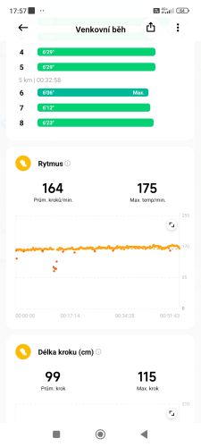 Dobrý den,mám dotaz,vždy když si jdu zaběhat tak začínám na tempu cca.155-158 ale postupně se potom zvedá a třeba už na pátém kilometru běžím třeba 165-168 a pak i třeba 170 Tepová frekvence je plus/mínus stejná jak se udržet třeba na tom tempu 160-165 max? Vždy prostě nějak nevědomky uteču z rytmu a běžím rychleji a tělo mě jako neposlouchá a musím se pak hodně soustředit na zpomalení,tempo nemám lineární ale zase nevím co je efektivnější jestli dělat větší kroky a nebo běhat jako přes lítka po "špičkách" posílám screen z dneška kdy jsem zaběhl 8 km v pohodě bez větších zadýchání ale tak nějak neefektivně běhám v členitém terénu a ciklotrasách Děkuji za rady