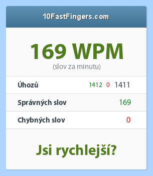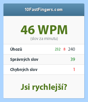 10fastfingers.com/... Není to tam. Škoda. Mám 240 úhozů a 95,47%.