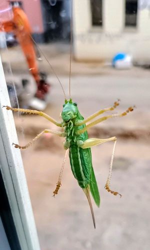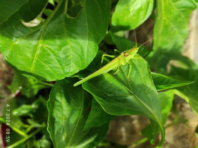 Nechala bych hmyz, ať se živí, stromku to neublíží, kobylka velká je dravý hmyz, aktivní do září a živí se převážně larvami jiného hmyzu. Kobylká velká, zelená je malý zázrak, viděla jednu minulý rok, umí splynout s přírodou.