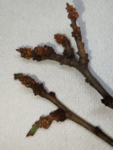 Dobrý den. Chtěl bych prosím poradit co to je chorobu nebo co to je zač? Je to na větvičkách slivoně. Letos měla velkou úrodu akorát se mi zdá že teď dřív opadávají listy jak jiné roky.Už nemá pomalu žádné listy. Děkuji
