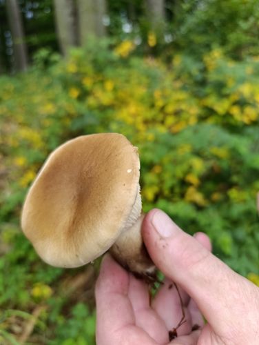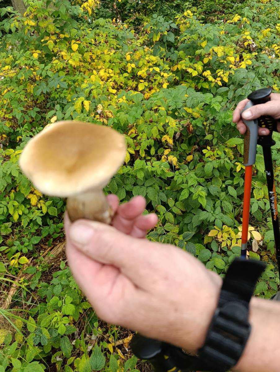 koncem srpna 2025 jsem navštívila Slepičí hory na jihu Čech. Při cestě na nejvyšší horu - Kohout, jsem našla zajímavou houbu. Houby tehdy nějak nerostly, měla jsem proto radost. Myslela jsem si zprvu, že podle barvy kloboučku a mírného vyklenutí to bude hřib. Nebyl. Houba má lupeny. Vůně byla velmi příjemná, "houbová". Fotky nejsou moc kvalitní, ale podaří se někomu určit, co jsem to tehdy na Kohoutovi našla? Děkuji - Jaga.