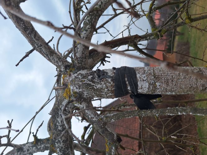 Ten povlak je lišejník, nevadí,ale můžete ho kartáčem odstranit.Dokud jsou pupeny nenalité a hnědé, udělejte řez,korunu udržujte kotlovitého tvaru na asi 5 kosterních větví, z nich nechejte výhony asi na 4 pupeny.Řez tak ke konci března.Odtraňte tu gumu nebo co to je, je vidět,jak to stromek škrtí.Nenechte korunu zahustit.